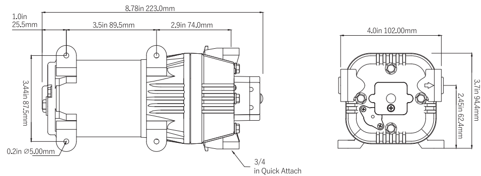 4-kamer verdringermembraanpomp, zelf aanzuigend, geschikt om droog te draaien |