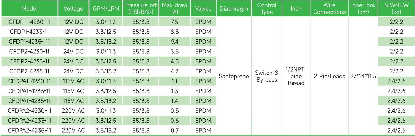 4-kamer verdringermembraanpomp, zelf aanzuigend, geschikt om droog te draaien