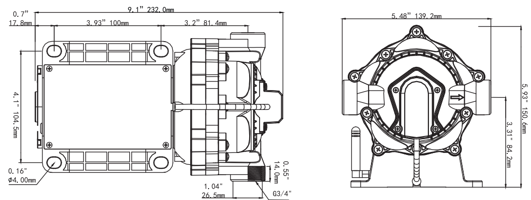 4-kamer verdringermembraanpomp, zelf aanzuigend, geschikt om droog te draaien |