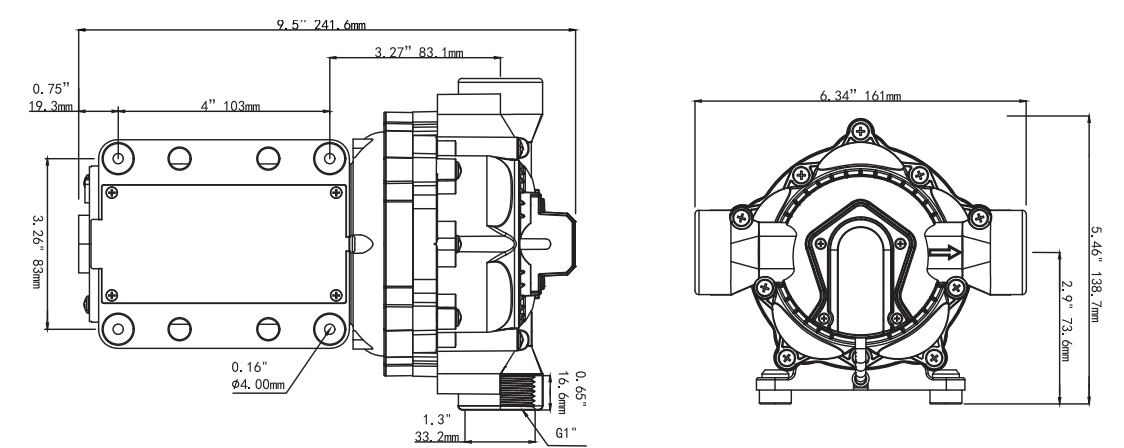 5-kamer verdringermembraanpomp, zelf aanzuigend, geschikt om droog te draaien |